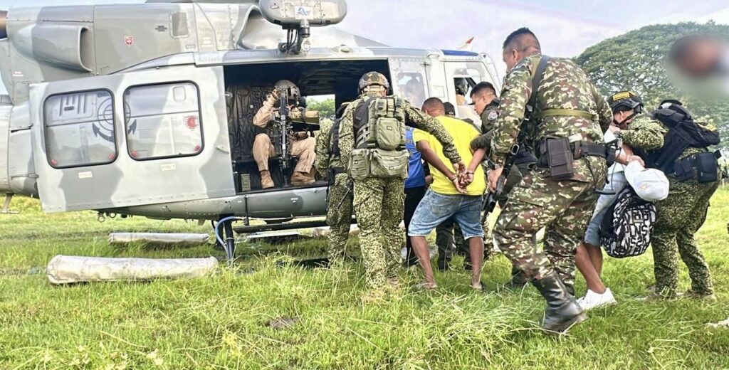 Durante las diligencias judiciales, fueron capturadas ocho personas que, al parecer, hacían parte de la subestructura “Erlin Pino Duarte” del GAO Clan del Golfo. Entre los capturados se encuentran alias Guacamayo, alias Lili y alias Aronis, quienes se desempeñarían como cabecillas de zona, responsables de liderar diversas actividades delictivas como la recaudación de rentas ilícitas derivadas de la minería ilegal, la extorsión a comerciantes, la venta de estupefacientes y sicariato en los municipios de Río Viejo, Puerto Rico de Tiquisio, Montecristo, Regidor y Pinillos en el Sur del departamento de Bolívar.