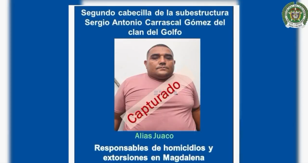 En un nuevo avance en la lucha contra el crimen organizado en Colombia, la Policía Nacional, en coordinación con la Fiscalía General de la Nación y el Ejército Nacional, capturó a seis presuntos integrantes del Clan del Golfo, entre ellos dos señalados cabecillas en el departamento del Magdalena.