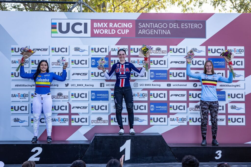 Nuevamente, como lo hizo días atrás, la pedalista barranquillera Sharid Fayad volvió a resaltar por la delegación de la Selección Colombia de BMX que compite en la Copa Mundo Unión Ciclística Internacional (UCI) de BMX Racing 2023, la cual se desarrolla en la pista del ‘Centro de Deportes’ de Santiago del Estero, en Argentina, pero en esta ocasión montándose en el podio.