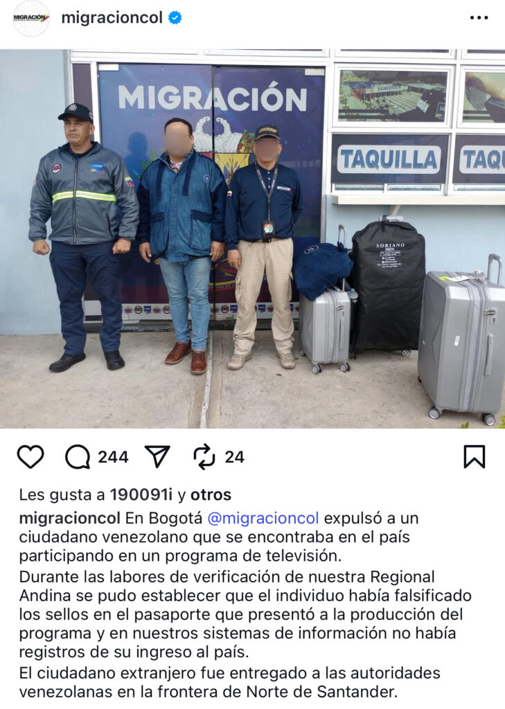 .@MigracionCol expulsó a un venezolano que se encontraba en el país participando en un programa de televisión.