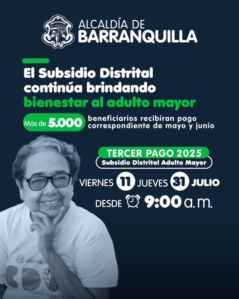 Habilitan pagos de ‘Subsidio Distrital’ y ‘Colombia Mayor’ de mayo y junio en Barranquilla