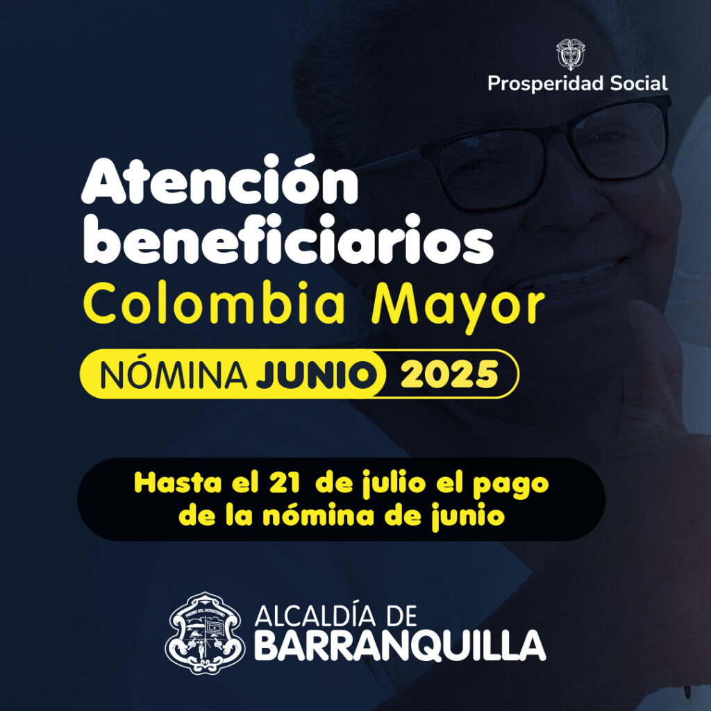 Hasta el 21 de julio, los beneficiarios de Barranquilla del programa Colombia Mayor pueden consultar el canal de pago de su transferencia monetaria de la nómina correspondiente al mes de junio a través del enlace https://consultagiros.bancoagrario.gov.co/ConsultaPagos/Consulta.aspx
