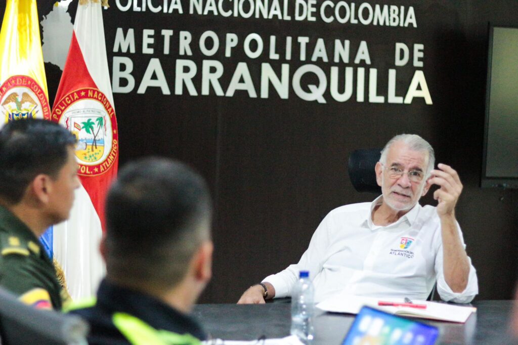 El gobernador del Atlántico, Eduardo Verano de la Rosa; el secretario del Interior, José Antonio Luque; y el comandante de la Policía Región 8, brigadier general Wharlinton Gualdrón Gualdrón, se reunieron hoy en las instalaciones de la Policía Metropolitana de Barranquilla para analizar las estrategias que se implementarán a fin de garantizar la seguridad de la ciudadanía en el territorio.
