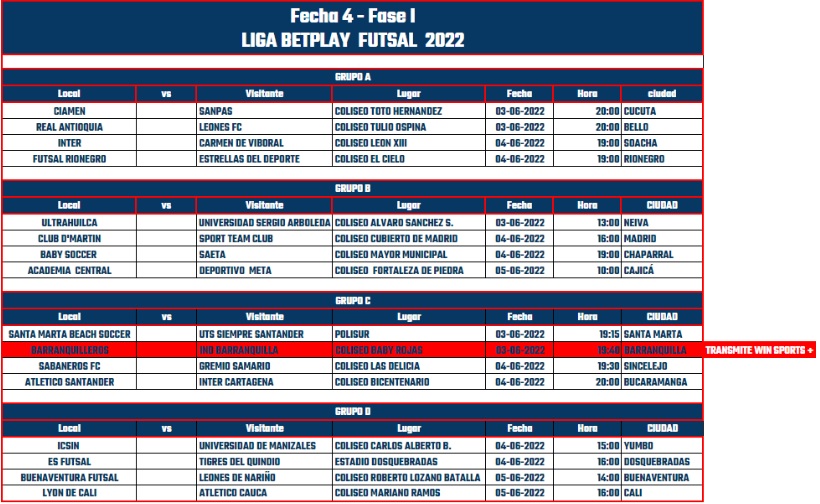 Estará en juego la disputa del primer puesto en el Grupo C de la Liga Colombiana de Fútbol Sala.