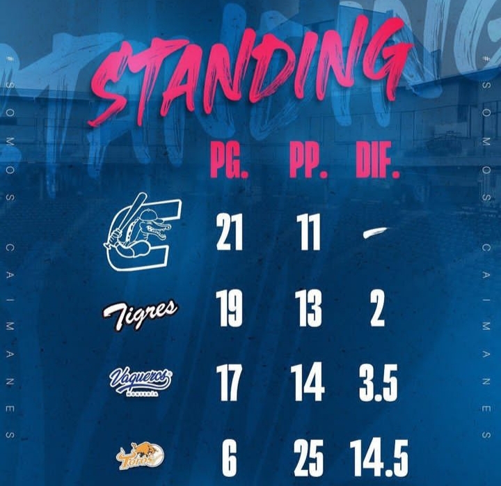 Luego del receso por la Navidad, el líder de la ‘pelota caliente’ colombiana en su temporada 2022-2023, Caimanes de Barranquilla, la noche del martes 27 de diciembre vuelve a las acciones encarando la jornada 33 frente a su escolta en la tabla de posiciones, Tigres de Cartagena, con el que chocará a partir de las 7:00 p. m. en el diamante Édgar Rentería de Barranquilla.