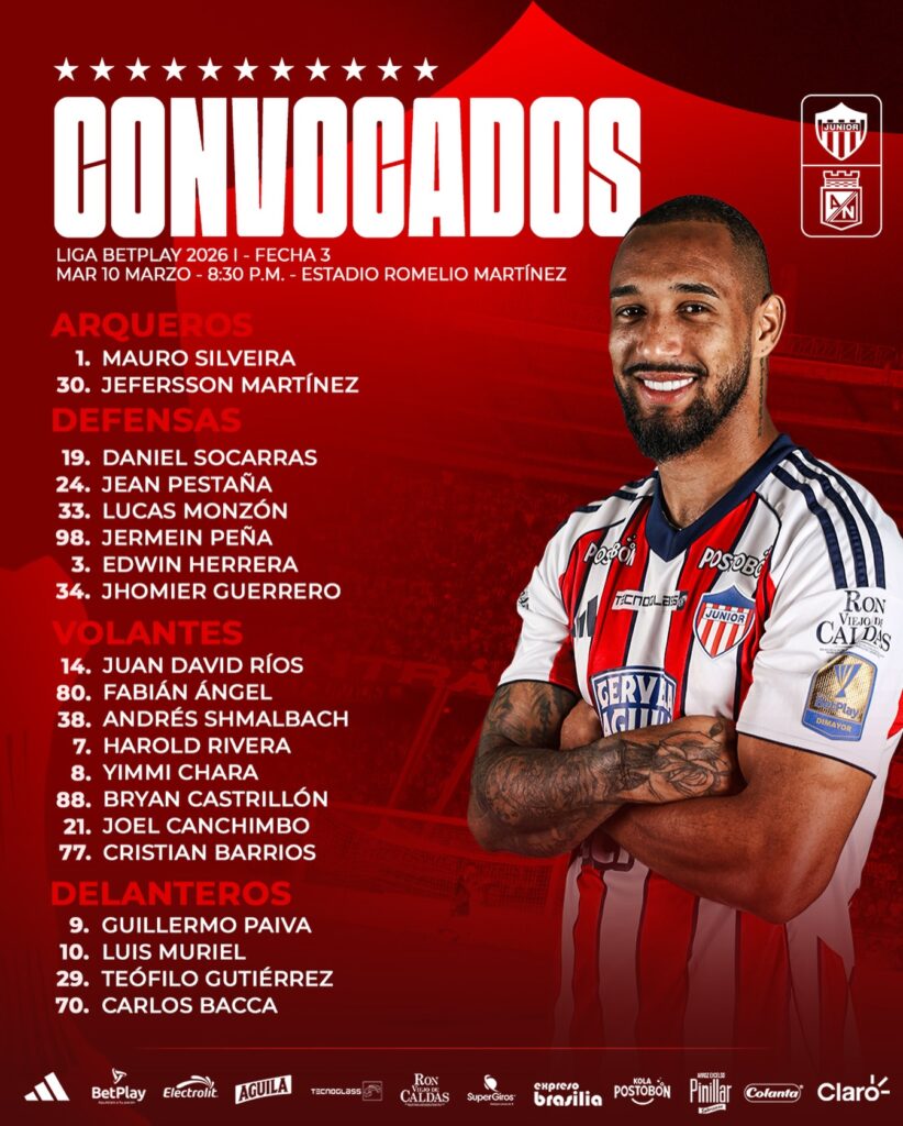 Junior de Barranquilla afrontará la noche (8:30) de este martes su partido por la aplazada fecha 3 de la Liga Betplay-I 2026 frente al Atlético Nacional de Medellín en el estadio Romelio Martínez, jugándose ambos la opción: el primer citado, de acercarse al nuevo líder, Deportivo Pasto, y el segundo, de ser el nuevo puntero.