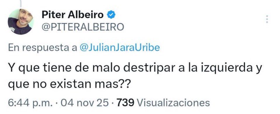 “¿Y qué tiene de malo destripar a la izquierda y que no existan más?”, preguntó, causando la indignación de muchos cibernautas, quienes lo señalaron de incentivar la violencia en el país.