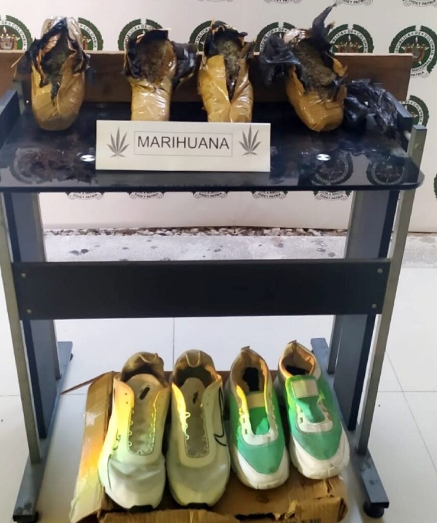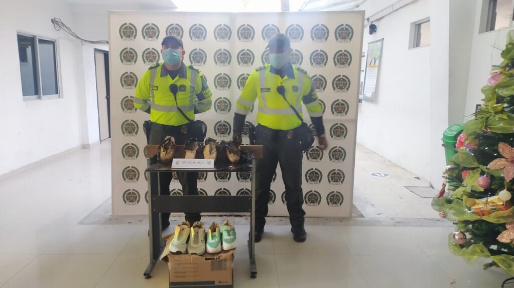 “En un vehículo de carga que provenía de la ciudad de Cali con rumbo a Barranquilla se hace una revisión donde en una de las cajas se encontraron unos tenis los cuales venían camuflados en su interior con tres kilos de marihuana, los cuales fueron puestos a disposición de la Fiscalía General de la Nación“, informó teniente coronel Héctor Uribe, jefe de la Seccional de Tránsito y Transporte.