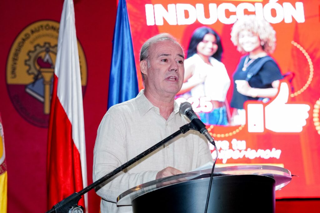 Por su parte, el Dr. Eduardo Arteta, secretario general de la institución, saludó a los nuevos miembros de la familia Uniautónoma, instándolos a desarrollar sus carreras con disciplina, esfuerzo y disfrutando su paso por la universidad.