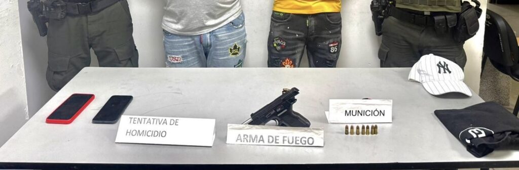 La Policía Nacional logró la captura en flagrancia de dos presuntos delincuentes por los delitos de tentativa de homicidio y fabricación, tráfico y porte ilegal de armas de fuego en el municipio de Malambo, Atlántico.