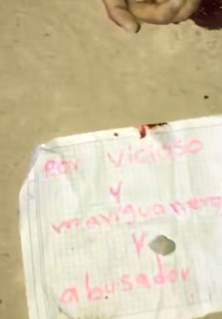 Poco después, el jueves, Dubian apareció sin vida: fue asesinado de varios disparos y a su lado dejaron un cartel con este mensaje: “Por vicioso y marihuanero y abusador”.