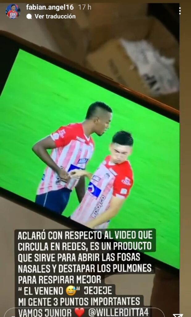 En el partido del Junior contra el Huila, desarrollado el miércoles 22 de septiembre, las cámaras de televisión grabaron un particular momento en el que los jugadores rojiblancos Fabián Ángel y Willer Ditta inhalaron, al parecer, carbonato amónico.