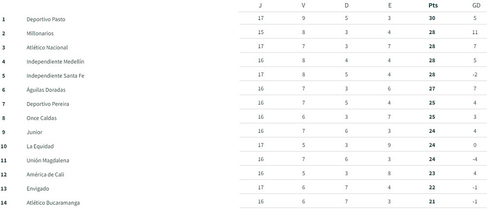 Pero para la visita en este cotejo hay otra preocupación que, quizás, es más importante que lograr meterse entre los ocho cuando en casi todo el torneo siempre estuvo en el segundo lugar, y es la tabla del descenso, en la que suma en el promedio 0.97 y donde el penúltimo, Patriotas Boyacá, lo tiene a 5 unidades (0.92), mientras el último, Cortuluá, se halla bastante distante (0.81), siendo la pelea en estas últimas cuatro fechas con los boyacenses.