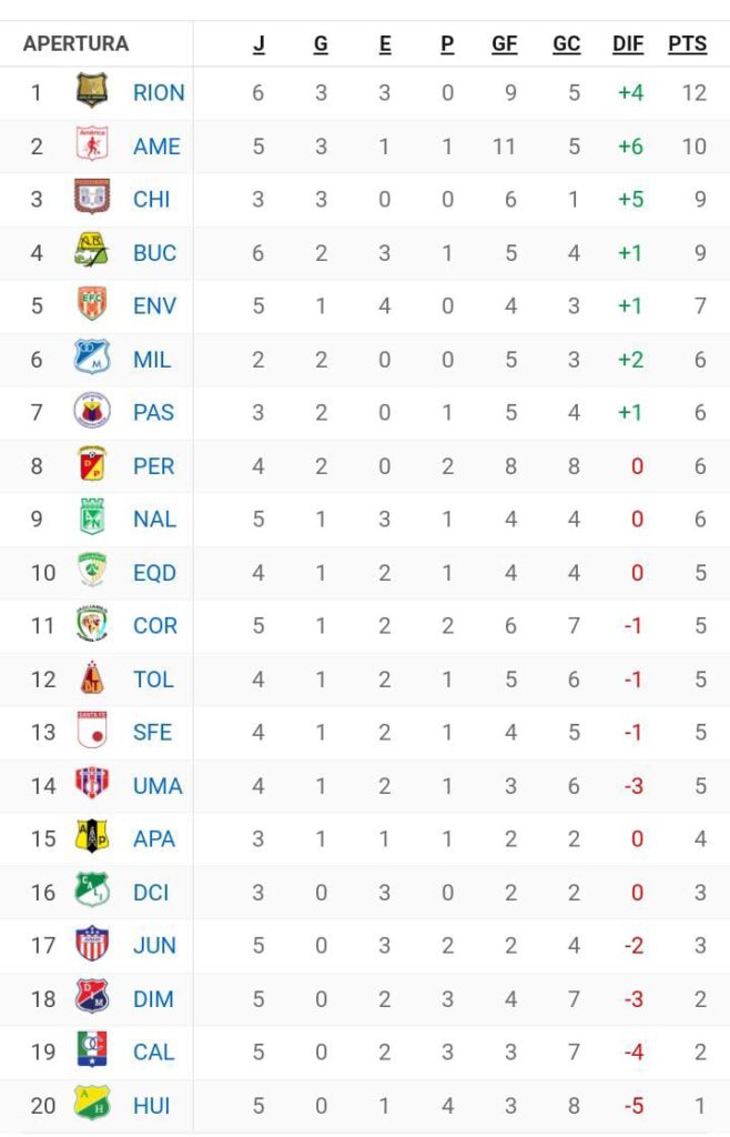 Con la victoria 1-0 en su casa de Águilas Doradas de Rionegro sobre Atlético Bucaramanga, en el juego dado la noche del viernes 24 de febrero y que dio apertura a esta sexta jornada, las aves antioqueñas asumieron parcialmente el liderato de la tabla con 12 puntos, acabando de paso con el invicto que traían los bumangueses, que quedaron por ahora en la casilla cuatro con 9 unidades.