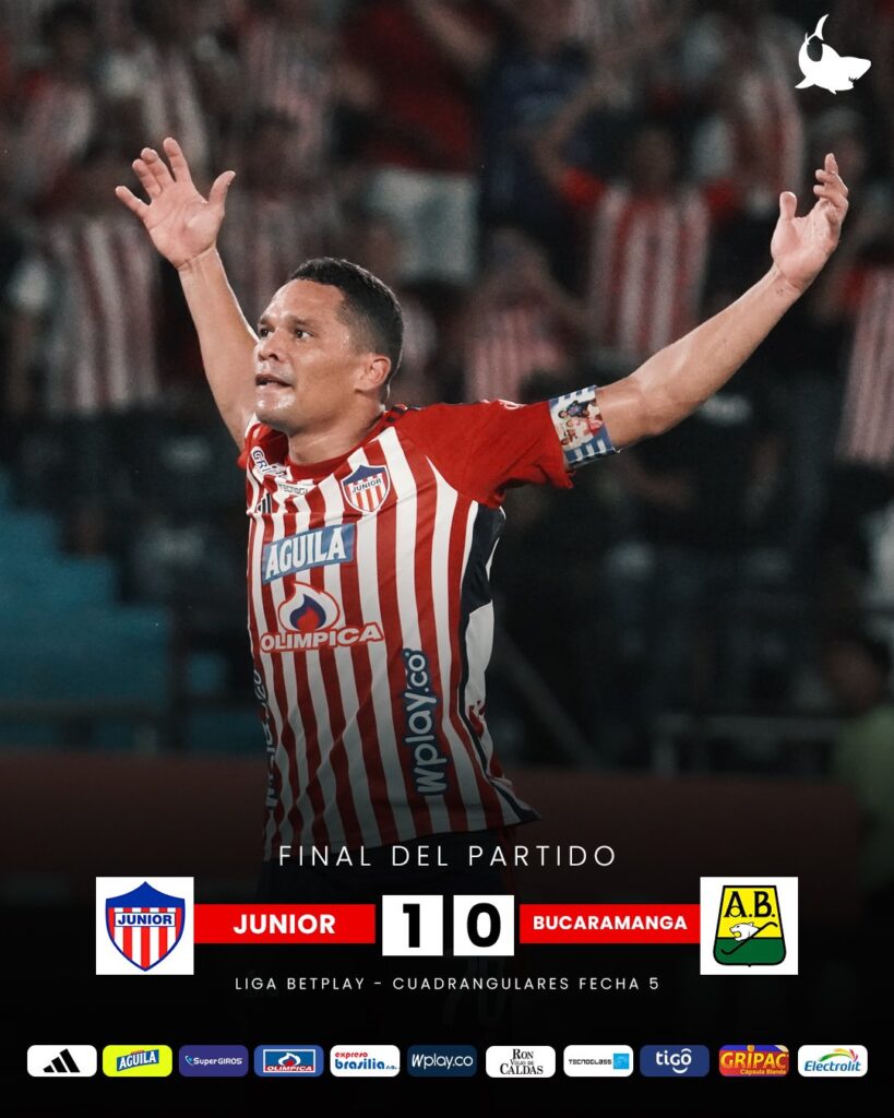 Junior de Barranquilla, la noche del sábado 25 de mayo, por la quinta jornada venció 1-0 al Atlético Bucaramanga en el estadio Metropolitano Roberto Meléndez e igualó con 8 puntos al líder por los goles a favor en el Grupo A, Deportivo Pereira, quedando ahora el ‘currambero’ condicionado a ganar o empatar en su última fecha ante Millonarios en Bogotá y mirar de reojo lo que pase en suelo santandereano entre el bumangués y el pereirano para definir su paso a la final de la Liga Betplay-I.