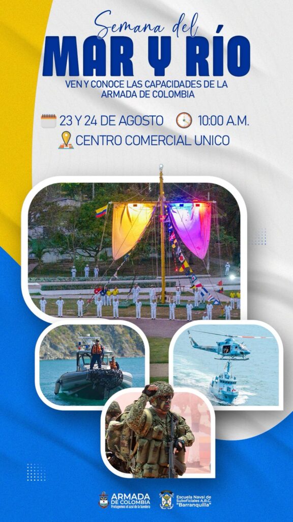 Entre las actividades más destacadas se encuentran la “Semana del Mar y del Río”, que se ha realizado en diversas ciudades con exposiciones interactivas, actividades pedagógicas y muestras tecnológicas. Barranquilla no será ajena a este espacio y la institución naval ha escogido el Centro Comercial UNICO Outlet para dar a conocer más de cerca a la comunidad sobre el trabajo de la Armada Nacional en la protección de la soberanía y el desarrollo marítimo del país.