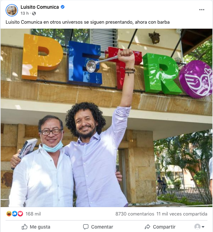 De hecho el mismo Petro compartió la imagen en sus cuentas de Twitter y Facebook con la frase: “en el multiverso con Luisito Comunica”.