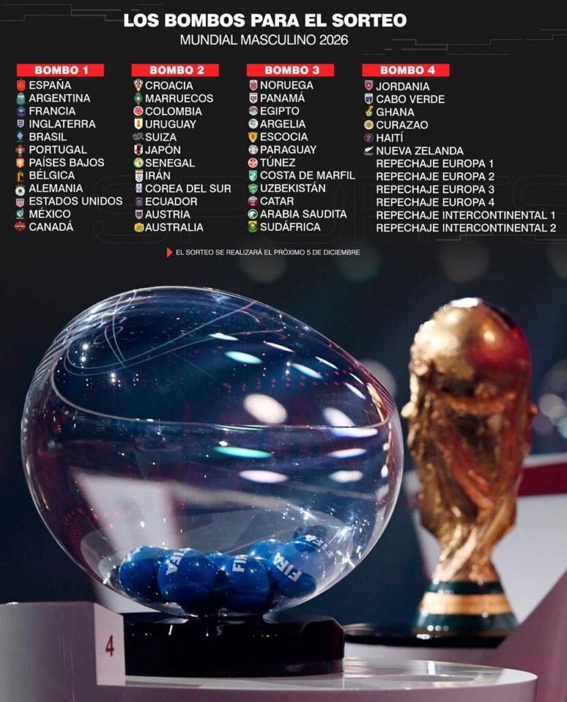 A partir de las 12:00 del medio día (hora colombiana) de este viernes 5 de diciembre, en la ciudad de Washington, capital de Estados Unidos, la Federación Internacional de Fútbol Asociado (FIFA) efectuará la gala del sorteo para definir los 12 grupos, cada uno integrado por cuatro seleccionados, de la Copa Mundo Estados Unidos, Canadá y México 2026.