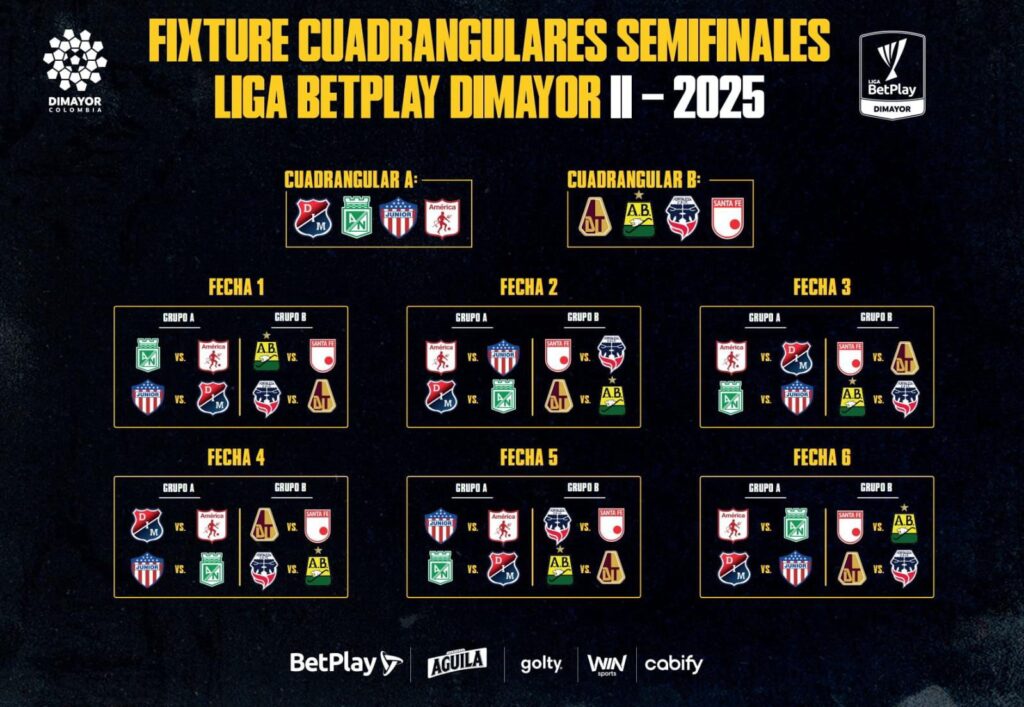 En las últimas horas, la División Mayor del Fútbol Profesional Colombiano (Dimayor) dio a conocer el calendario de los partidos de los cuadrangulares A y B de la Liga Betplay-II 2025, quedando solo pendiente la fijación de las fechas y sus respectivos horarios, lo que deberá hacer pronto.