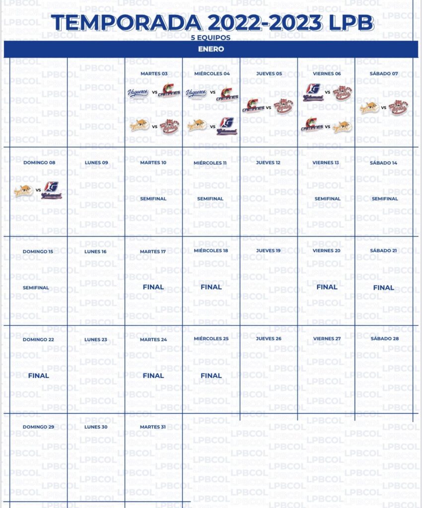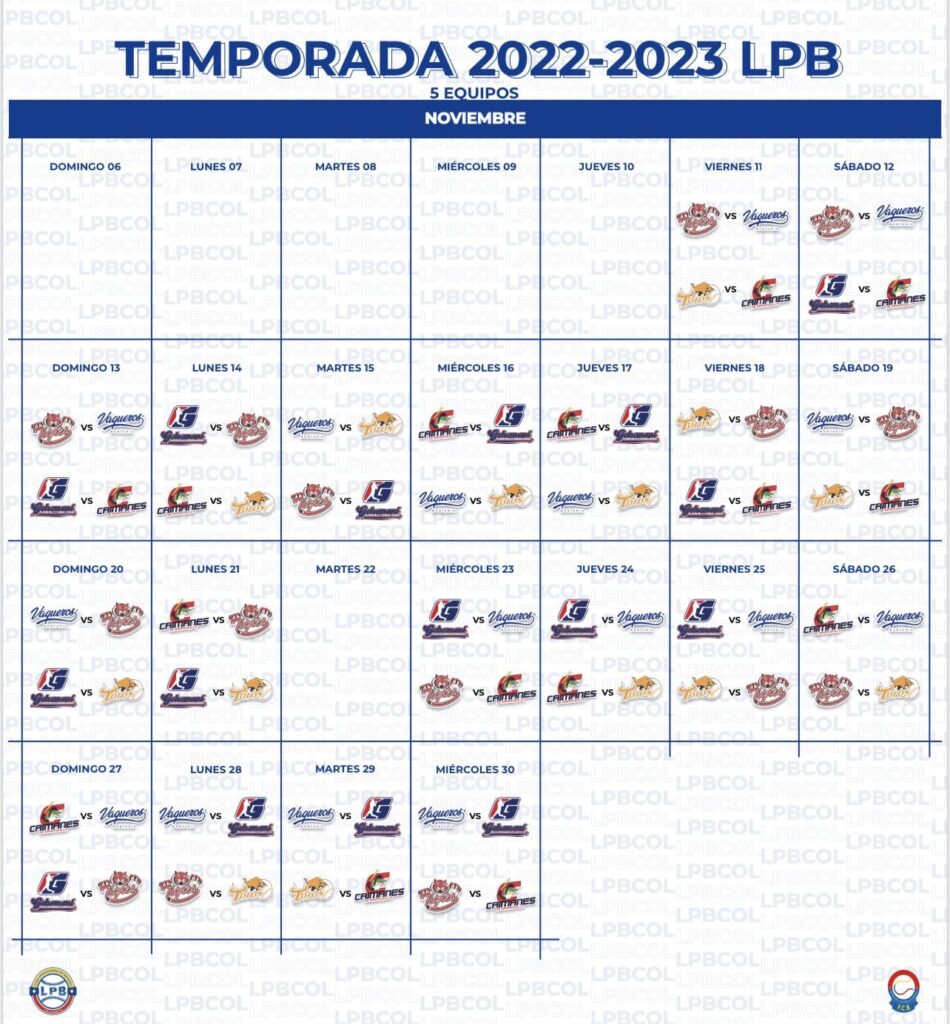 A partir del sábado 11 de noviembre próximo, Caimanes de Barranquilla iniciará la defensa de su bicampeonato que ostenta en la Liga Profesional de Béisbol Colombiano, cuya temporada 2022-2023 arrancará ese día y finalizará el miércoles 25 de enero del año entrante.