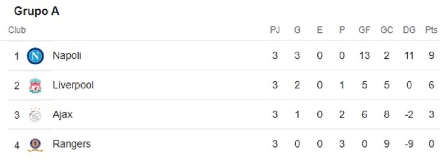 Con este triunfo el Pool logra sumar 6 puntos y se ubica en la segunda casilla de su Grupo A, el cual es comandado por Napoli de Italia, que la tarde de este martes humilló con un 6-1 al Ajax, y en Holanda.