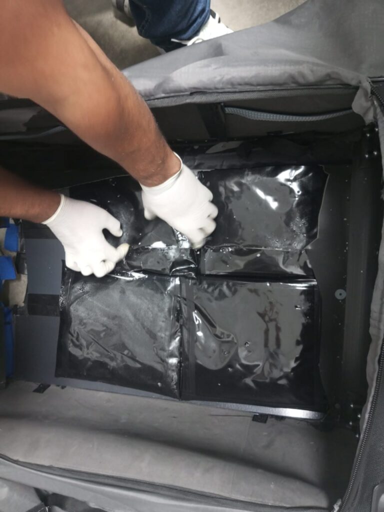 La captura se materializó en el aeropuerto Ernesto Cortissoz cuando las unidades de Antinarcóticos realizaban control de pasajeros en el filtro internacional, seleccionando aleatoriamente los equipajes para su revisión. De esta forma hallaron una maleta que tenía un doble fondo.