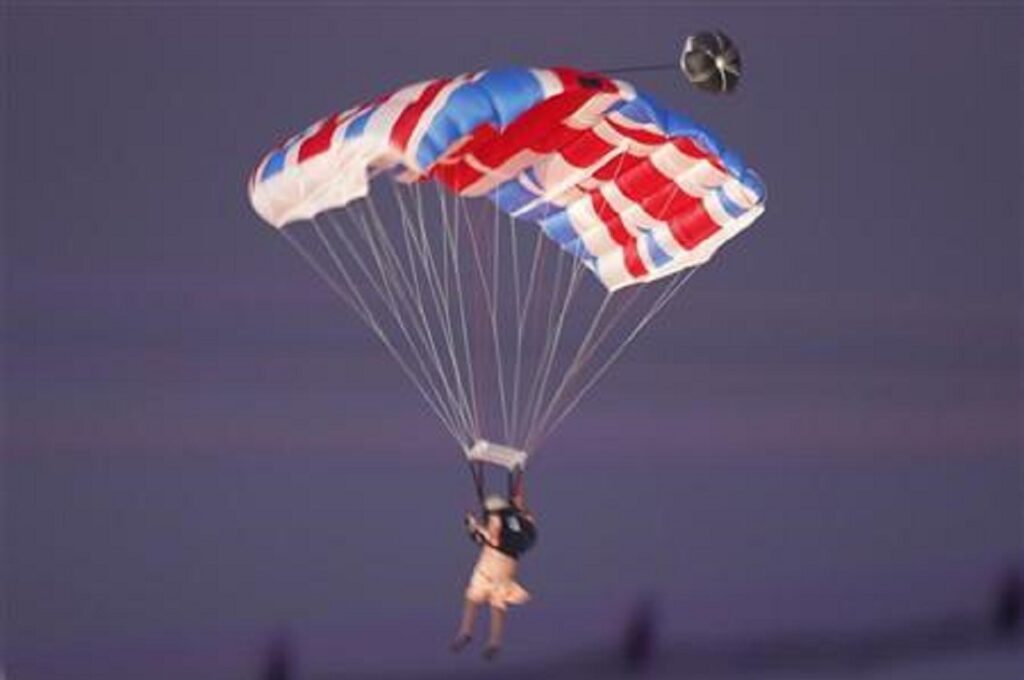 La doble de la reina saltó en paracaídas en la ceremonia de inauguración de los JJOO de 2012. Foto: REUTERS/Jorge Silva
