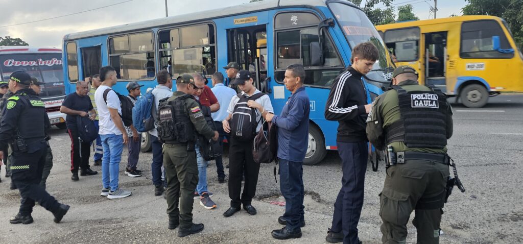 En el marco del plan, la Policía realiza registro a pasajeros en distintos puntos de la ciudad y el área metropolitana. Fotografía: Policía Metropolitana de Barranquilla.