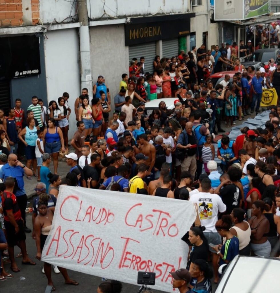 En las calles, la indignación estalló en protestas masivas. Decenas de residentes de las favelas marcharon frente a la sede del gobierno estatal, gritando “¡asesinos!” y ondeando banderas brasileñas teñidas de rojo con pintura.