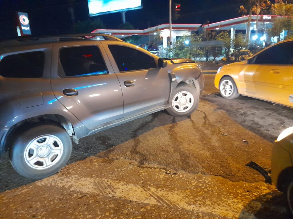 Además, agregó: “En lo que miramos ahí, todo indica que la camioneta gris fue la que se voló el semáforo en la salida del aeropuerto, vendría distraído el muchacho e impactó de costado al taxi”.