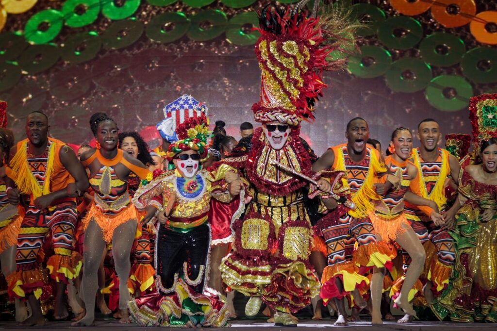 La narrativa celebró la riqueza musical y dancística del Caribe afroantillano, y continuó con una sentida exaltación a San Basilio de Palenque como cuna de resistencia y libertad en voces de grandes cantadoras del Caribe como Lina Babilonia y La Carmen, para llegar al Carnaval de Barranquilla, teniendo como insignias el mapalé, son de negros y la danza del congo, con el Congo Grande de Barranquilla, danza dirigida por el Rey Momo, director de esta danza ancestral de 150 años, quien acompañó este momento junto a su nieto Isaac y el Rey Momo del Carnaval de los Niños,Joshua Ortiz, representando el traspaso generacional del turbante y con él, los saberes y la cultura.