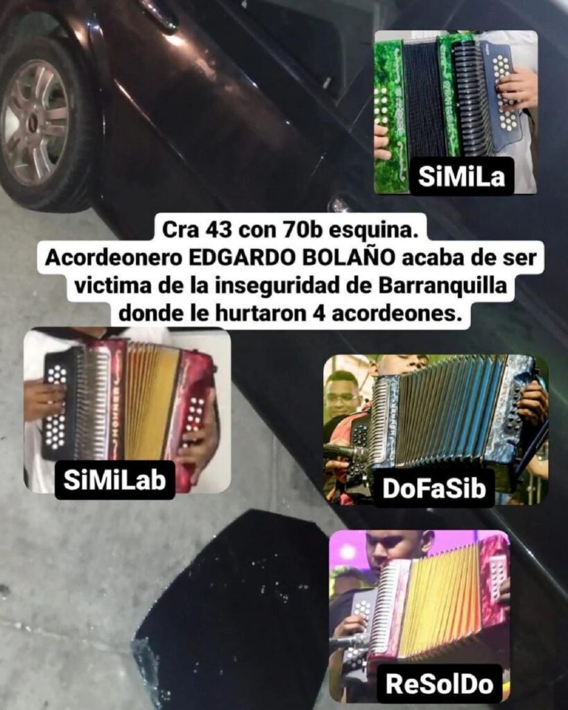 El acordeonero agradeció a todo el que pudiera dar información sobre el paradero de sus cuatro instrumentos y contó que también le fueron hurtados un sistema de monitoreo personal marca Takstar y un morral donde llevaba la ropa con la que se iba a presentar.
