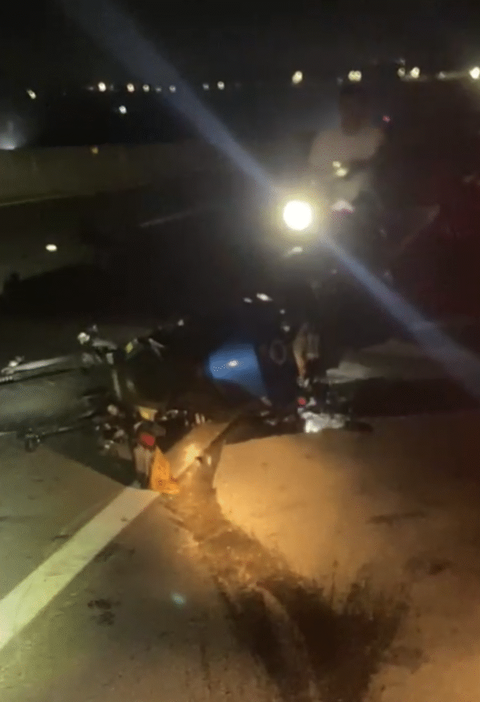 La víctima mortal cayó de su moto y debido a la alta velocidad en la que iba perdió la vida de forma instantánea; entre tanto, el vehículo deportivo terminó descendiendo por una pendiente hasta prenderse en llamas a causa del violento impacto.