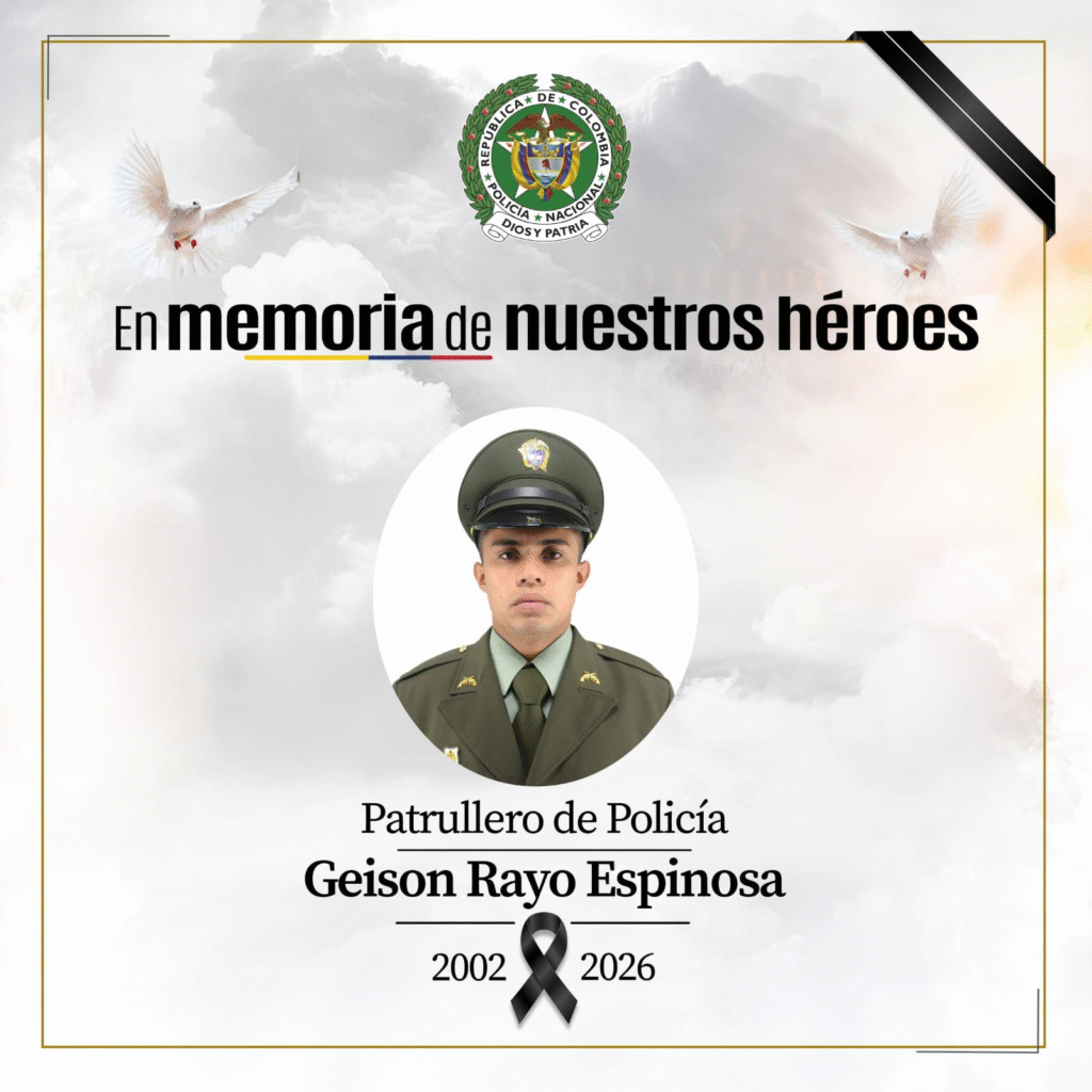 El crimen del patrullero Jeison Rayo Espinoza, de apenas 24 años, ocurrió la noche del lunes 20 de abril, cuando él y un grupo de compañeros se encontraban adelantando labores de registro, control de establecimientos y verificación de antecedentes, en el marco de un dispositivo especial de seguridad desplegado durante una feria local.