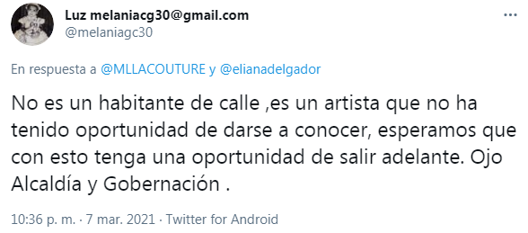 La mujer, al igual que muchas personas y varios medios de comunicación, aseguró en su red social que se trataba de un habitante de la calle; no obstante, muchos usuarios han salido a “aclarar” la situación.