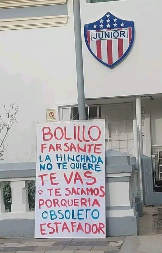 Sigue retumbando todavía en las esquinas barranquilleras, donde usualmente se reúnen a hablar los hinchas de su equipo Junior de Barranquilla, el letrero que apareció instalado el pasado domingo, día del cumpleaños número 99 del club, en las afueras de la sede administrativa del Rojiblanco.