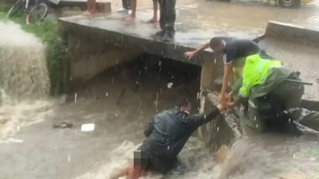 Este 19 de agosto, a las 4:00 de la tarde, aproximadamente, el patrullero José Jiménez, adscrito a la Fuerza de Control Territorial, Fucot, rescató a un menor de 11 años que era arrastrado por la corriente de un arroyo en el barrio Ciudadela 20 de Julio de Barranquilla.