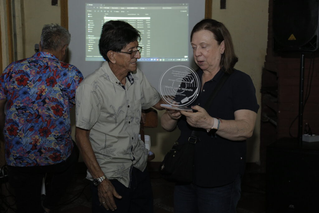 La homenajeada Martha Lucía Velandia recibió un emotivo mensaje a través de una conexión virtual (vía Meet) del reconocido Arturo “Pollito” Zamudio. Arturo y Martha Lucía fueron compañeros clave e impulsores de grandes artistas para el sello DISCOS FM, logrando éxitos memorables con figuras como Tito Rojas, Guayacán Orquesta y Limit 21, entre otros.