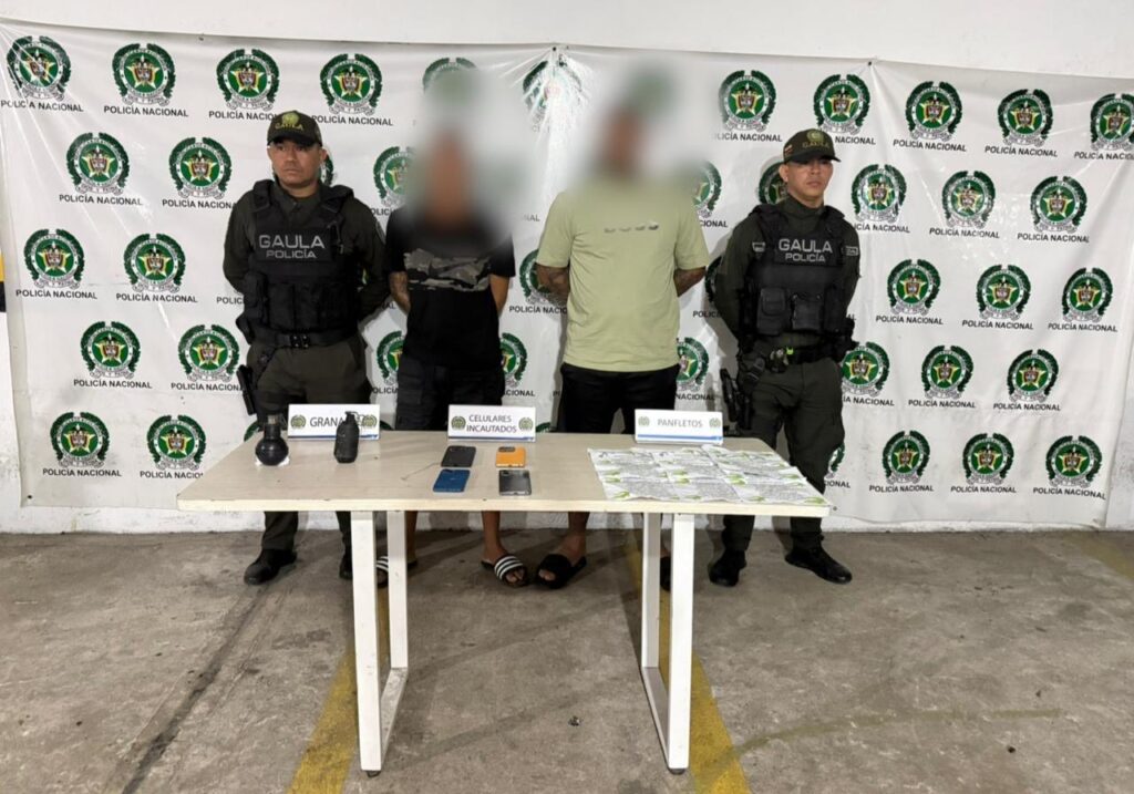 Durante los operativos se logró la incautación de dos granadas de fragmentación modificadas, ocho teléfonos celulares, 13 panfletos extorsivos, $2.560.000 en efectivo y una motocicleta.