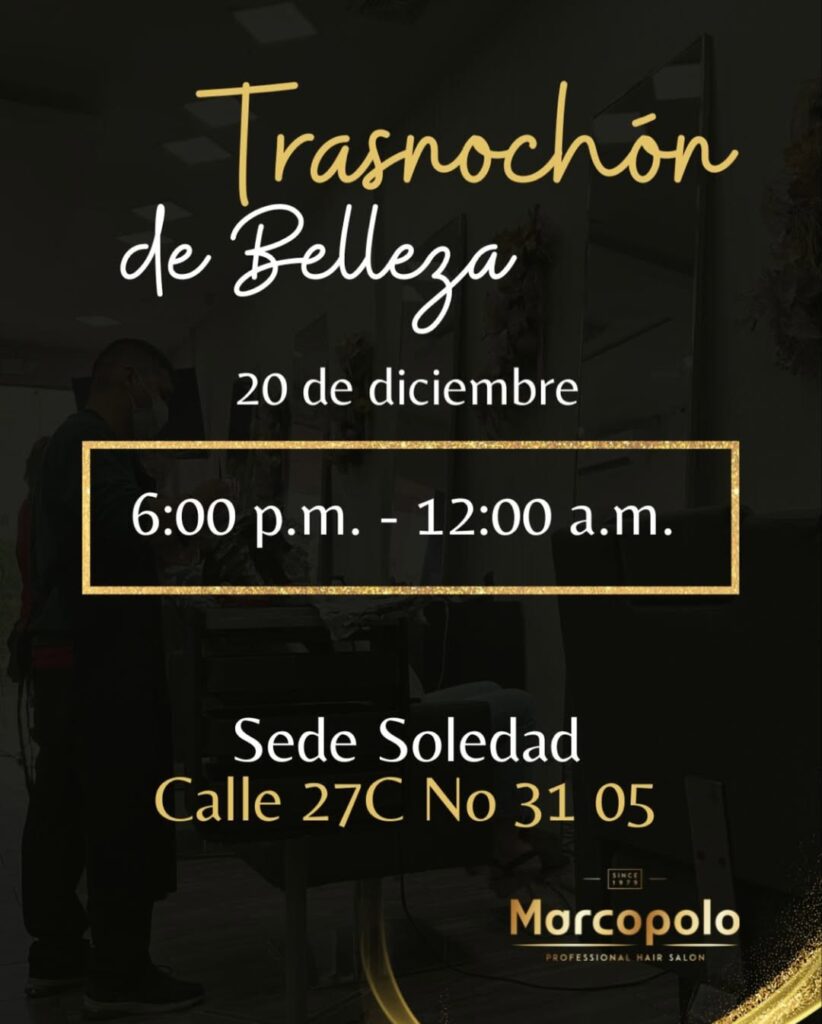 Una gran oferta y oportunidad para sus clientes ha realizado la peluquería Marcopolo en sus sedes ubicadas en el norte de Barranquilla, Villa Santos y en el municipio de Soledad, para los días previos a la Navidad con el lanzamiento de el “Madrugón y Trasnochón de Belleza”.