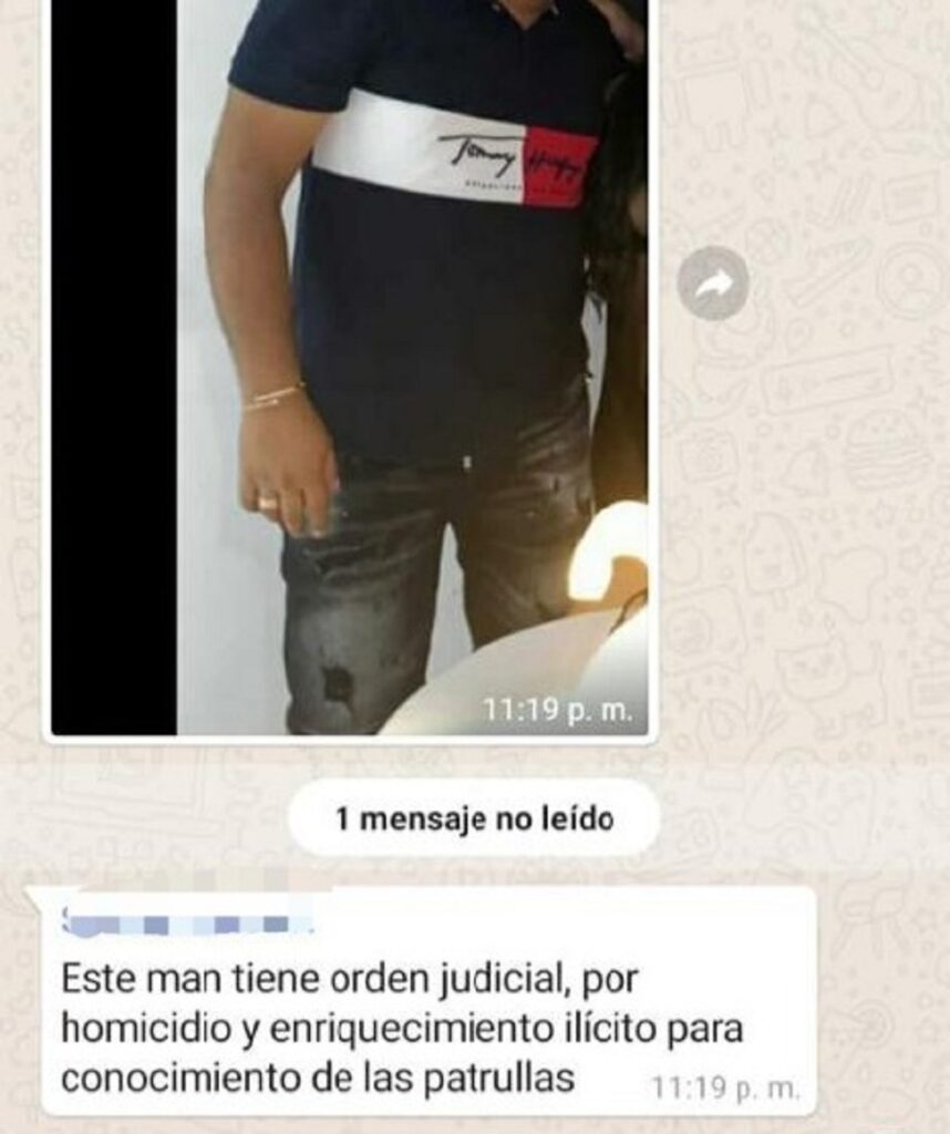 “Él creó hace tiempo un grupo como de 20 patrullas y el viernes pasado a las 11:19 p. m. mandó una foto mía diciéndole a los policías que yo tenía orden de captura por homicidio y enriquecimiento ilícito. Varios de los policías que me conocen me llamaron, yo me asusté y cuando me mostraron la captura de pantalla me di cuenta que era él. Yo les dije que no le prestaran atención, que él tuvo una relación con la pareja que está conmigo ahora”, contó el hombre.