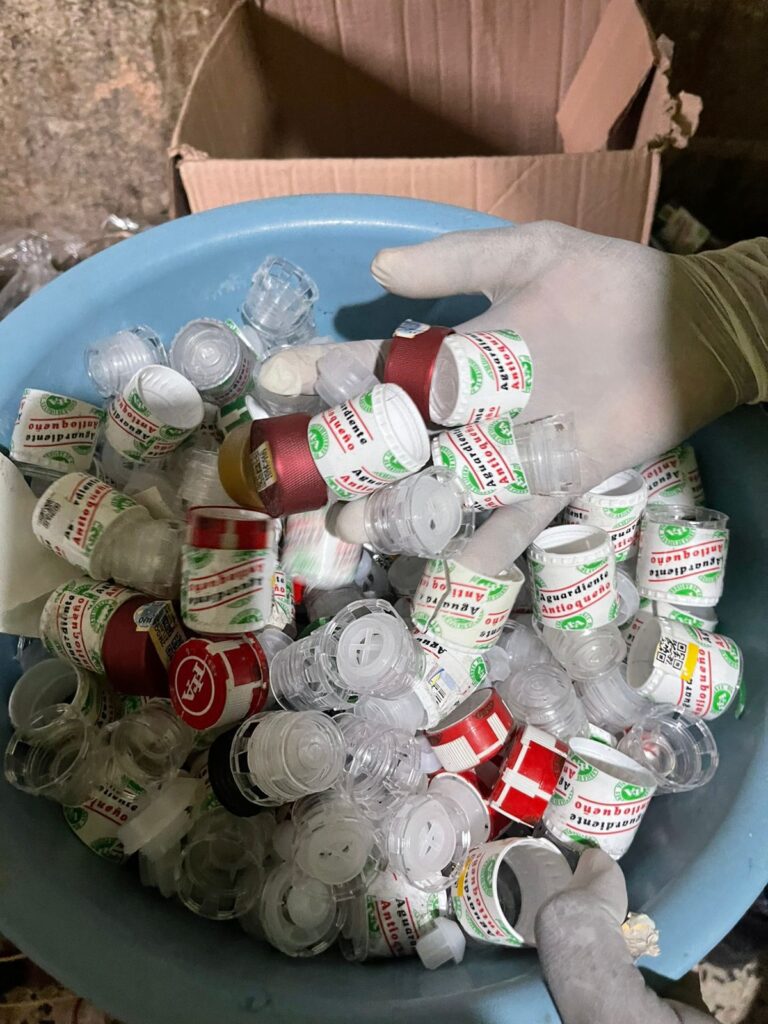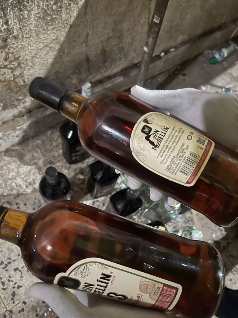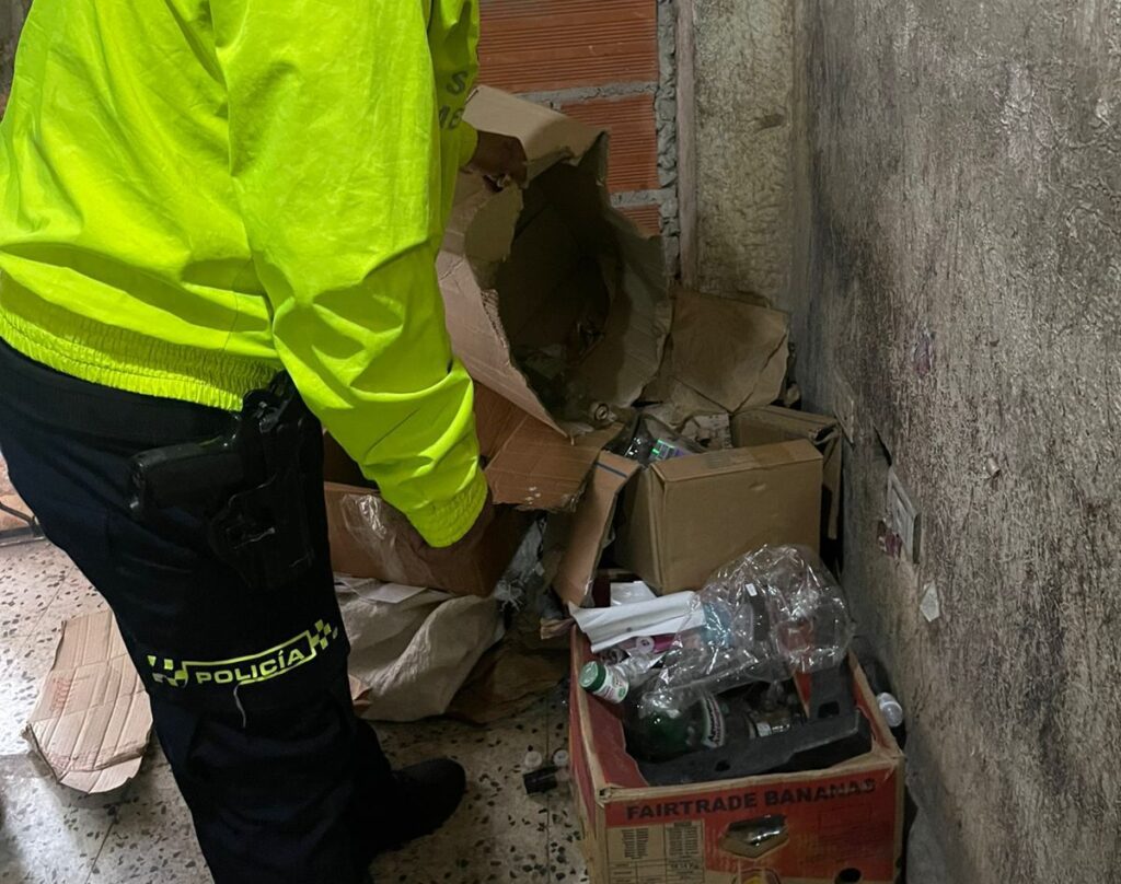 Durante el procedimiento, desarrollado por unidades de la Seccional de Investigación Criminal (Sijín), se incautaron diversos elementos utilizados para la producción y distribución de licor adulterado. Entre los objetos decomisados se encuentran 215 botellas vacías de whisky, 45 botellas vacías de aguardiente, un tanque con manguera y licor adulterado, un recipiente plástico de color blanco también con licor adulterado, además de 10 botellas de aguardiente con contenido, una botella de whisky y 13 botellas de ron igualmente con licor.