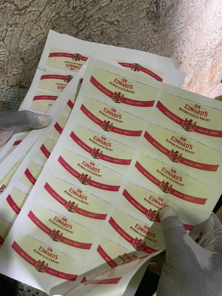 Fueron incautadas 215 botellas vacías de whisky, 45 botellas vacías de aguardiente, estampillas falsificadas y más.