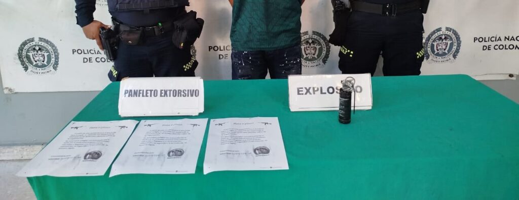 El procedimiento se llevó a cabo en el sector de la carrera 33 con calle 10, cuando uniformados adelantaban actividades preventivas y observaron a un ciudadano en actitud sospechosa. Al practicarle un registro personal, se le halló en su poder un artefacto explosivo tipo granada y varios panfletos alusivos a una estructura delincuencial, sin contar con la autorización correspondiente para su porte.