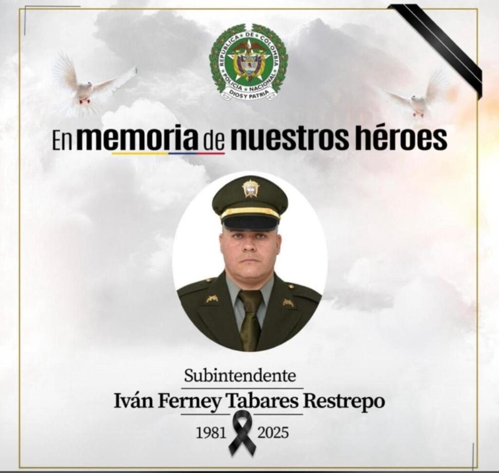 Unos criminales asesinaron al subintendente Iván Ferney Tavares Restrepo de 44 años cuando se movilizaba en el sector de Manrique el Pomar.
