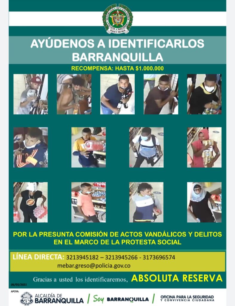 La Policía Metropolitana de Barranquilla dio a conocer este 20 de mayo quiénes son las personas más buscadas por cometer actos de vandalismo valiéndose del derecho a la protesta y empañando las manifestaciones pacíficas.