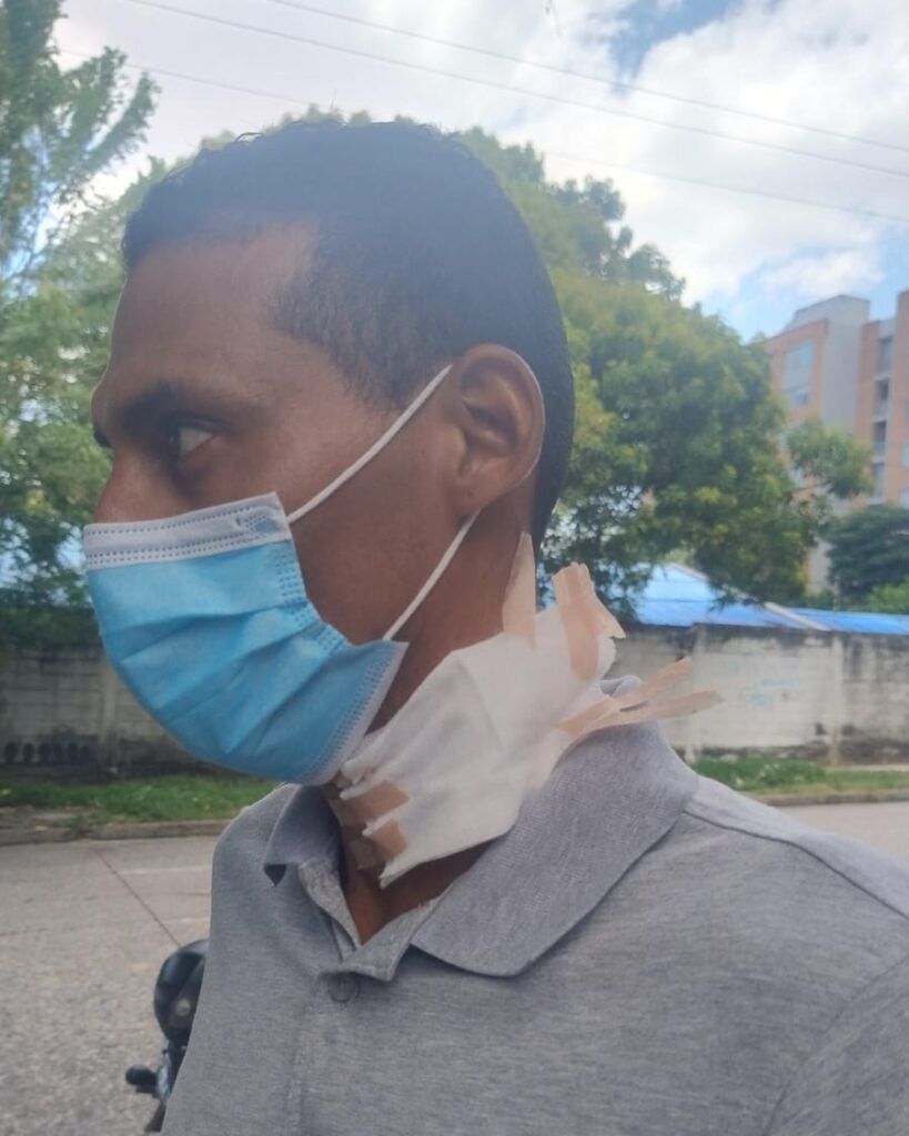 “Ocurrió una disputa por ir a reclamar unos productos, perfumes, que me habían hurtado de una casa donde me había mudado, salí de discusión con la hija de la señora , ella buscó a un amigo, tuvimos otra discusión, él estaba tomando, me partió la botella en la cabeza y con el pico de botella me apuñaló en el cuello, casi me da en la aorta”, contó el hombre.