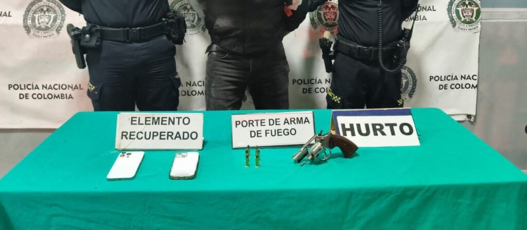 Durante el procedimiento, el individuo fue sorprendido con un arma de fuego y con los elementos que, al parecer, habían sido hurtados minutos antes en el establecimiento comercial.