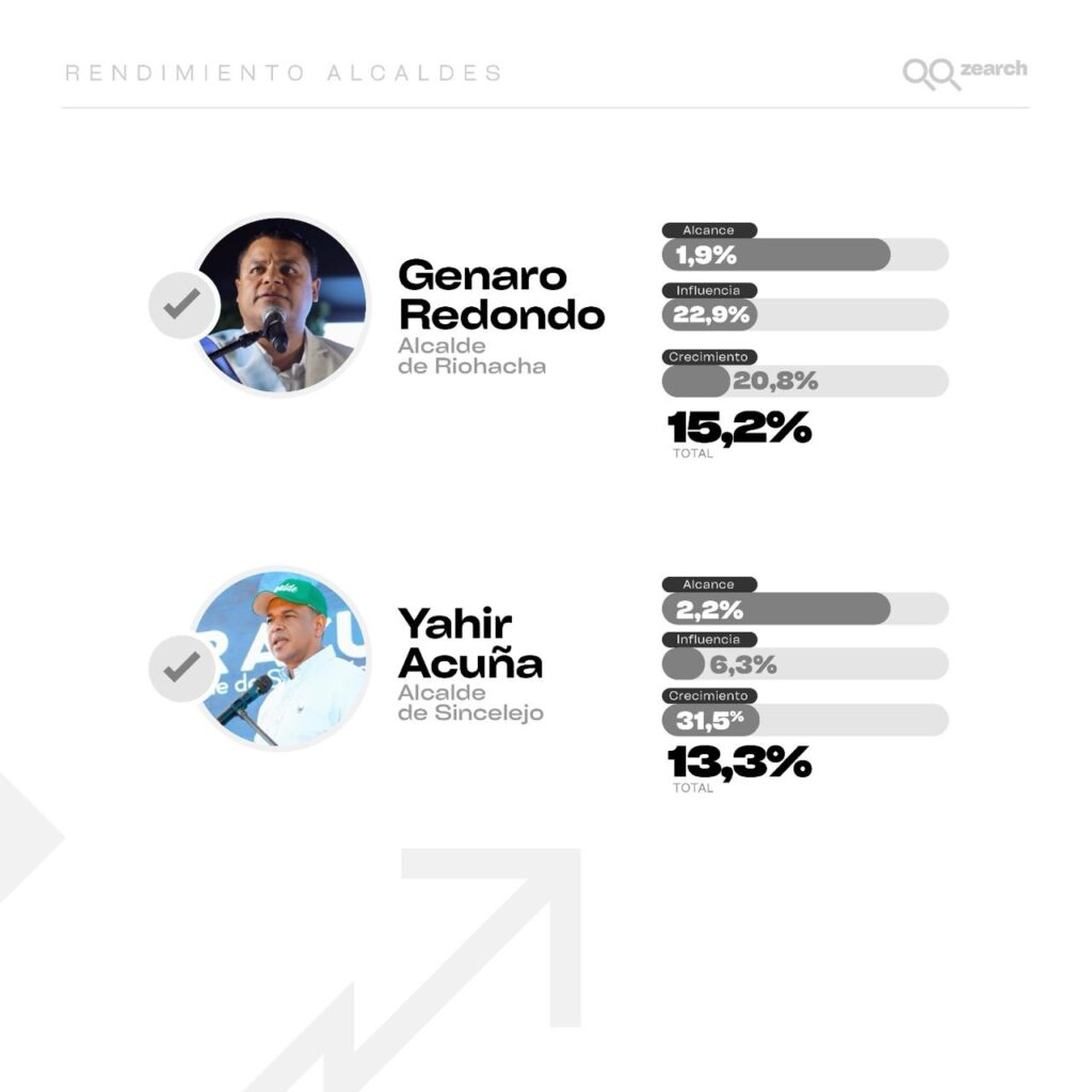 Después del alcalde de la capital del Atlántico el posicionamiento e impacto digital de los otros mandatarios locales se devela de la siguiente manera:
