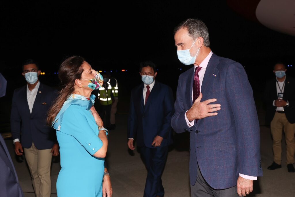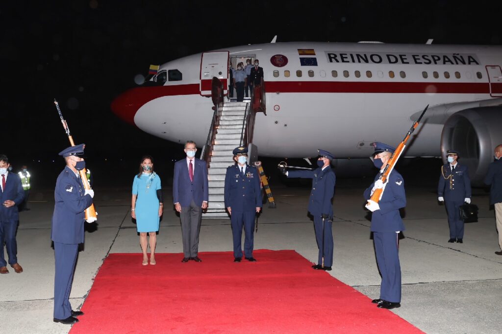 A su llegada al aeropuerto internacional Ernesto Cortissoz, el monarca fue recibido por diferentes autoridades como la vicepresidenta y canciller de la de Colombia, Marta Lucía Ramírez; el embajador de España en Colombia, Joaquín de Aristegui, y el embajador de Colombia en España, Luís Guillermo Plata.